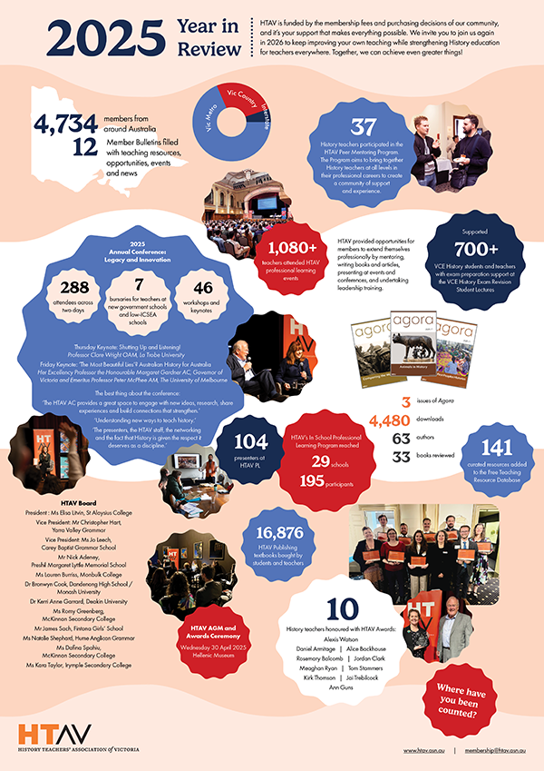 - support its members with professional learning events, including two conferences, two History Teaching Masterclasses and events for new and out-of-field teachers
