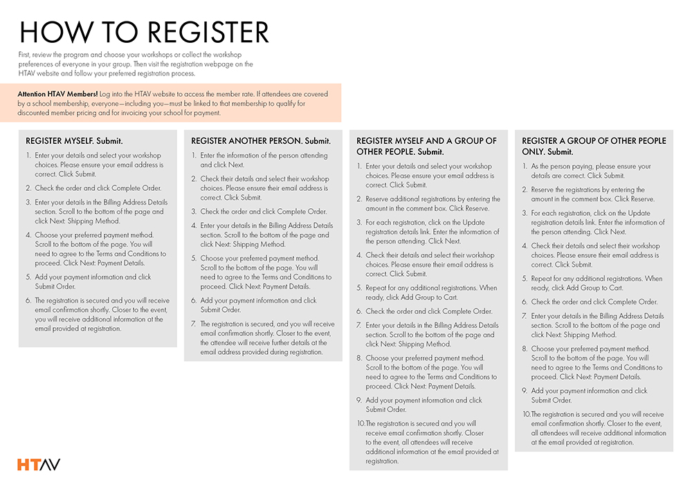 | To get the discounted member rate, you must login at the top of this page using your unique login details that are attached to an active HTAV membership. If you're not yet a member, join HTAV today to unlock your special rate. It's always cheaper to become an Individual Teacher member and register to attend the conference. Plus, you'll receive all of the added member benefits. Trouble logging in? Please contact Michelle Pitcher at membership@htav.asn.au. |
